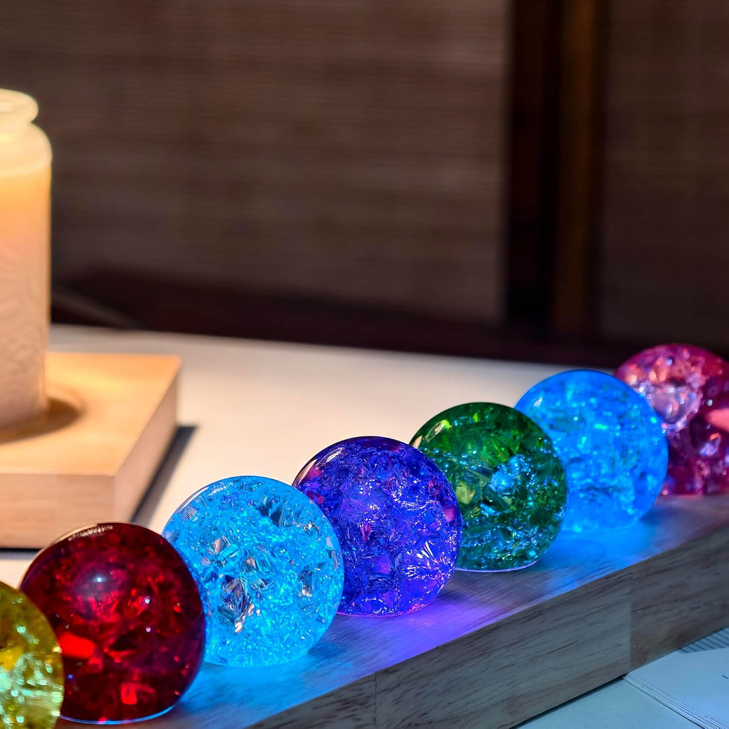 Mesmerizing 7-Color Crystal Illumination: Each sphere illuminates with a unique cracked-glass texture that scatters light into vibrant, starry reflections across your walls. The seven distinct colors create a full spectrum of visual variety, turning any space into a serene and magical atmosphere. As light shines through the crystal cracks, it forms dynamic shadows that shift gently, enhancing relaxation and creativity. This multi-color glow can elevate nighttime reading, meditation, or simply transform your room's mood. The effect is soft enough not to overwhelm yet bright enough to draw attention.